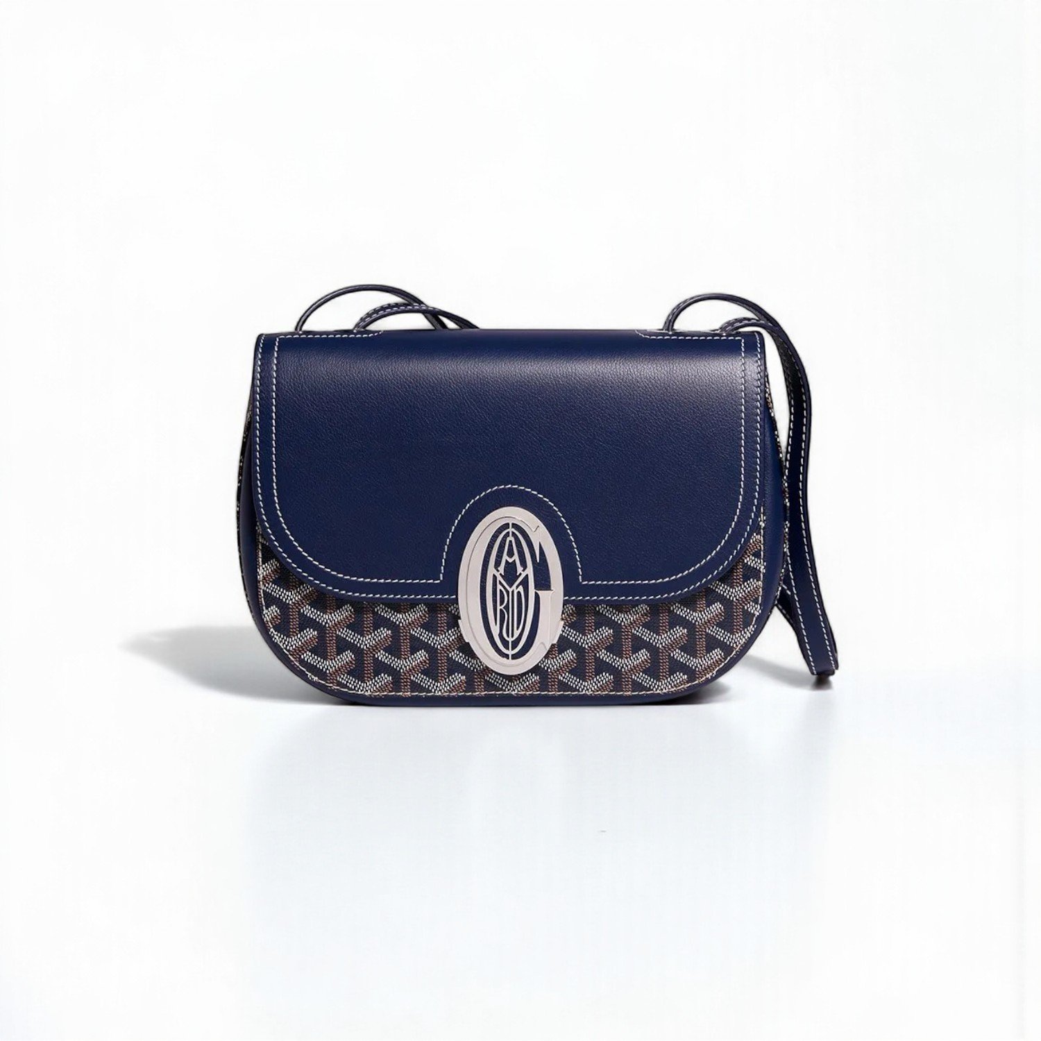 Materials    Goyardine Canvas & Chevroches Calfskin Size 25 cm Color Navy Blue