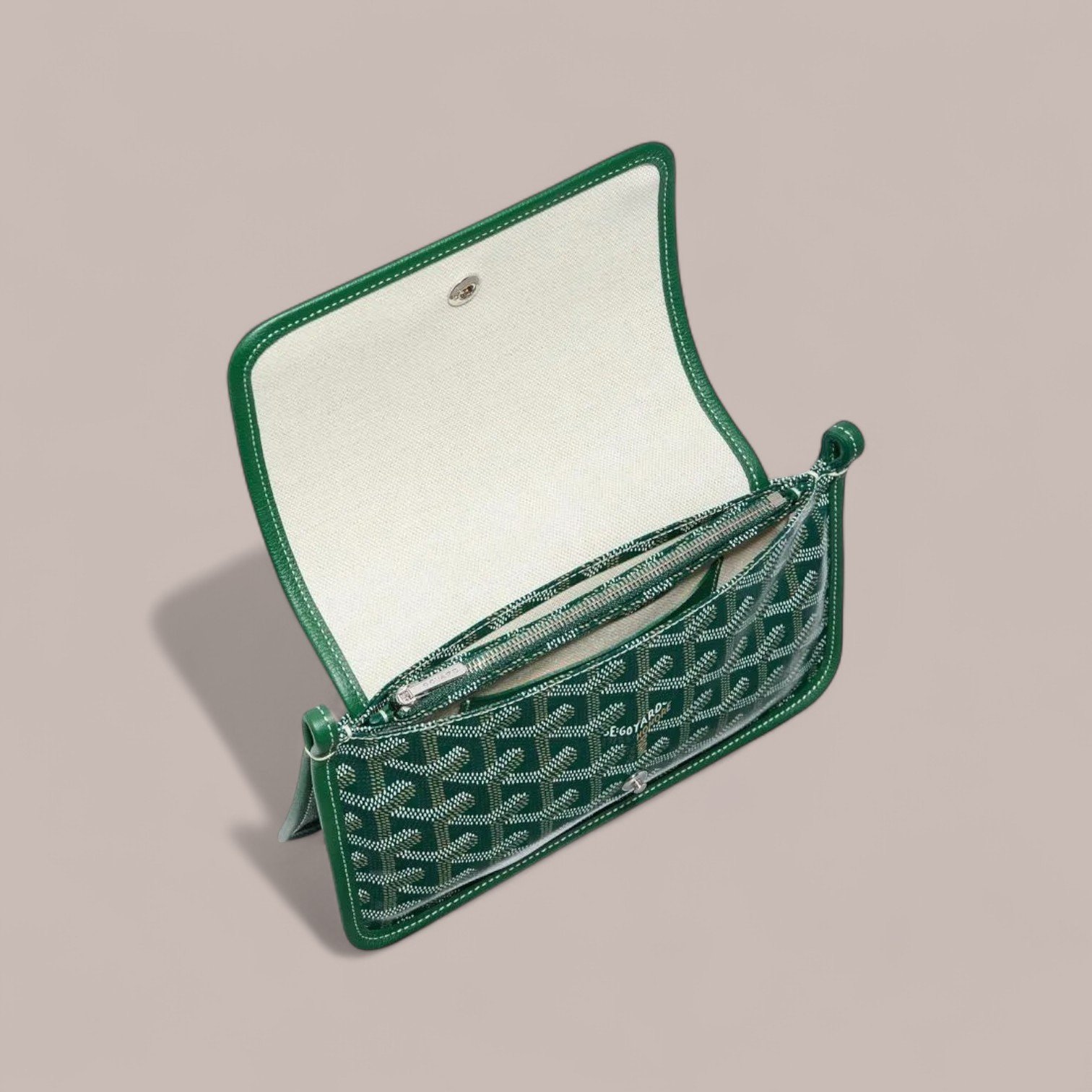 Materials  Goyardine Canvas & Chevroches Calfskin         Linen and Cotton Inner Side Size   L 20.5 cm x W 2.5 cm x H 14 cm Color Green