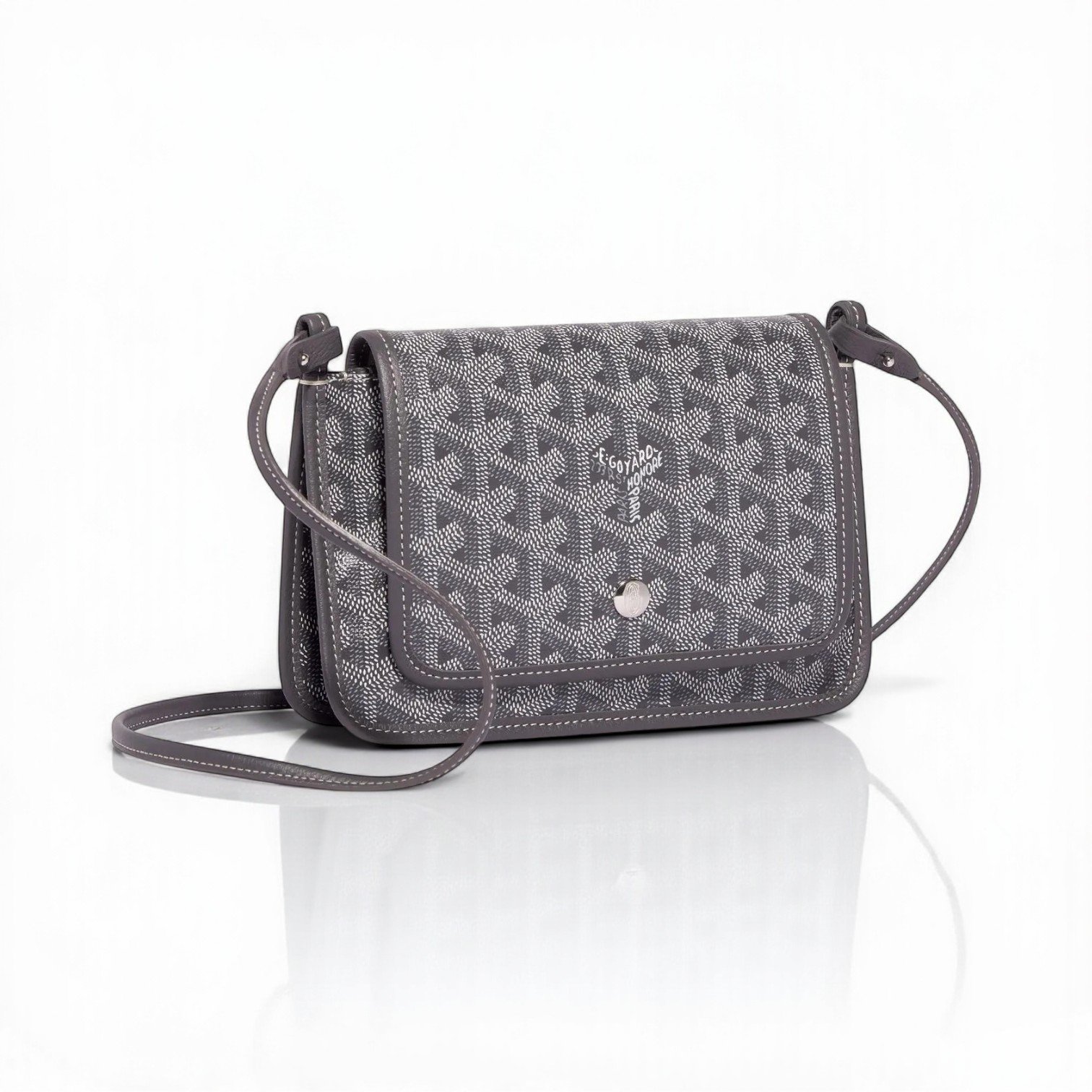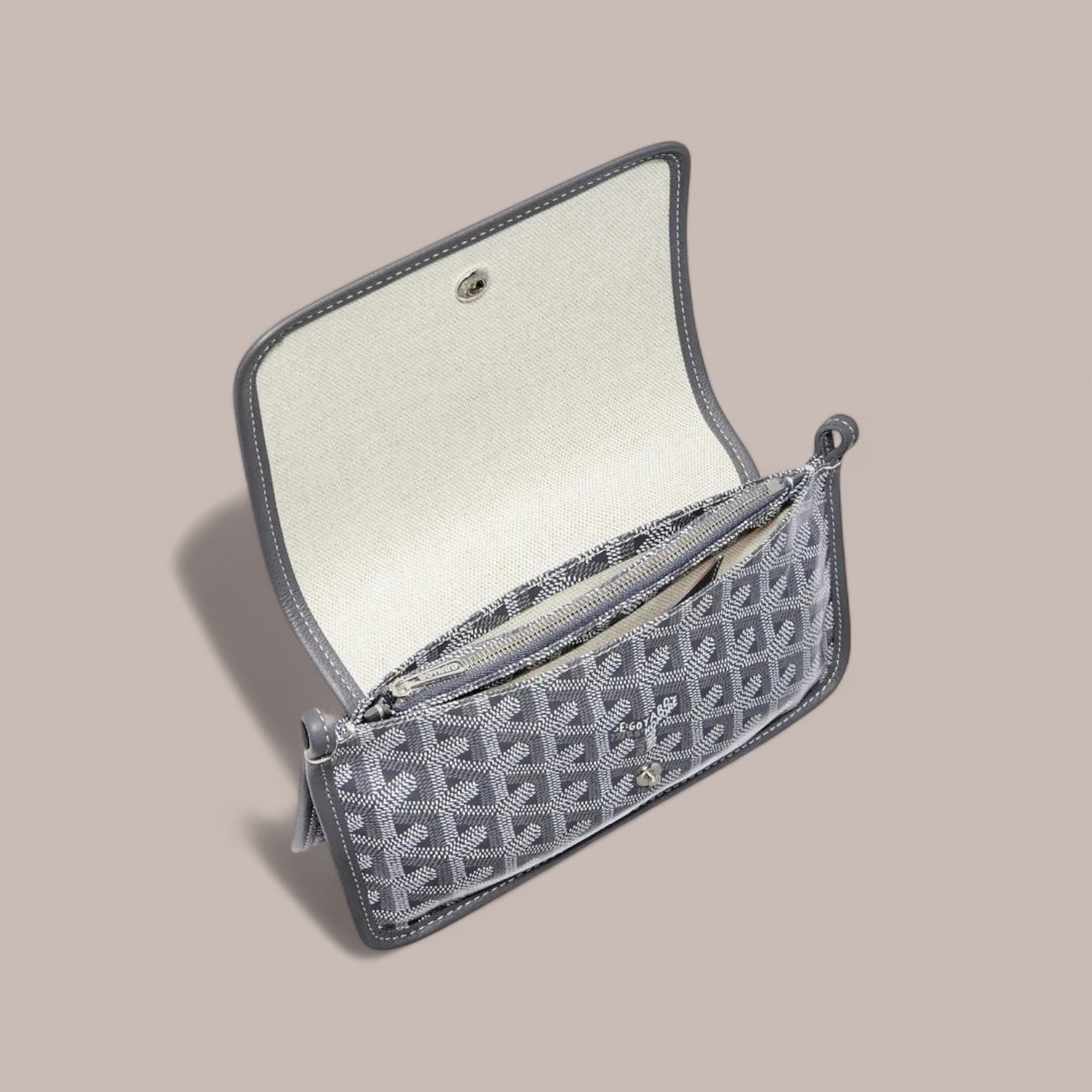 Materials  Goyardine Canvas & Chevroches Calfskin         Linen and Cotton Inner Side Size   L 20.5 cm x W 2.5 cm x H 14 cm Color Grey