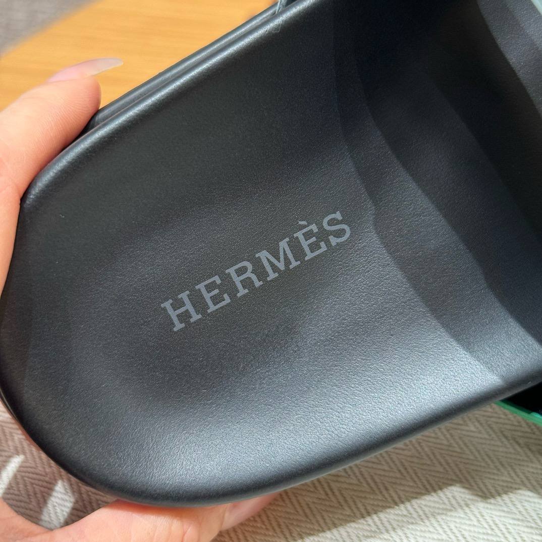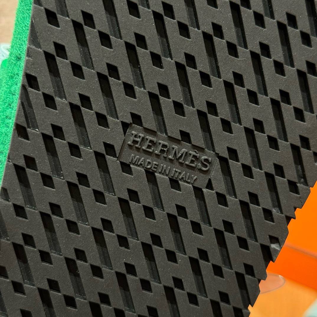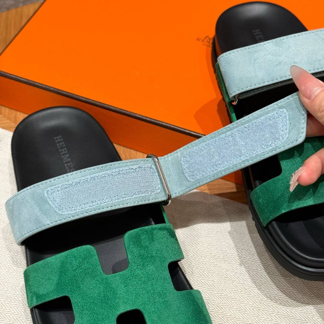 Hermes Chypre Sandals in Green/Light Blue, Chamois Leather
