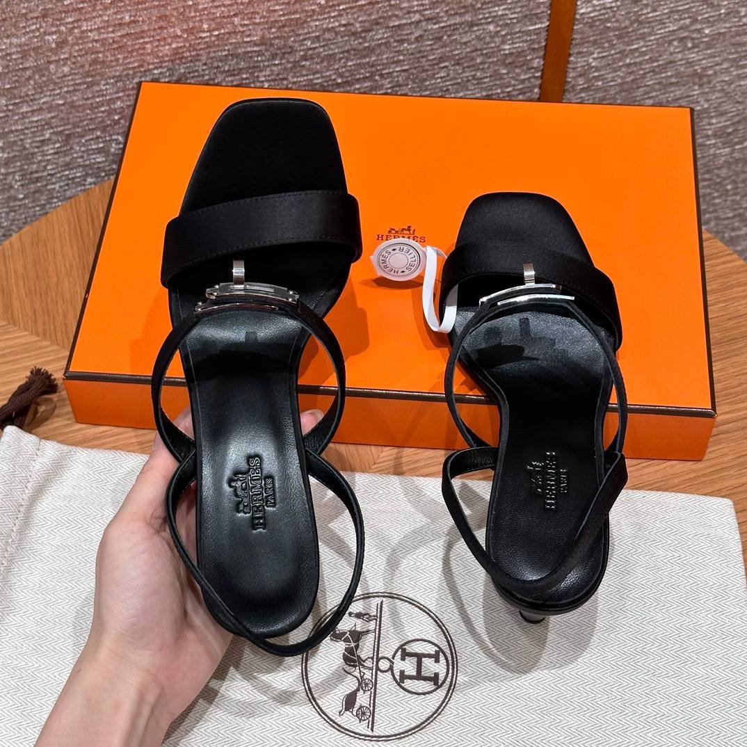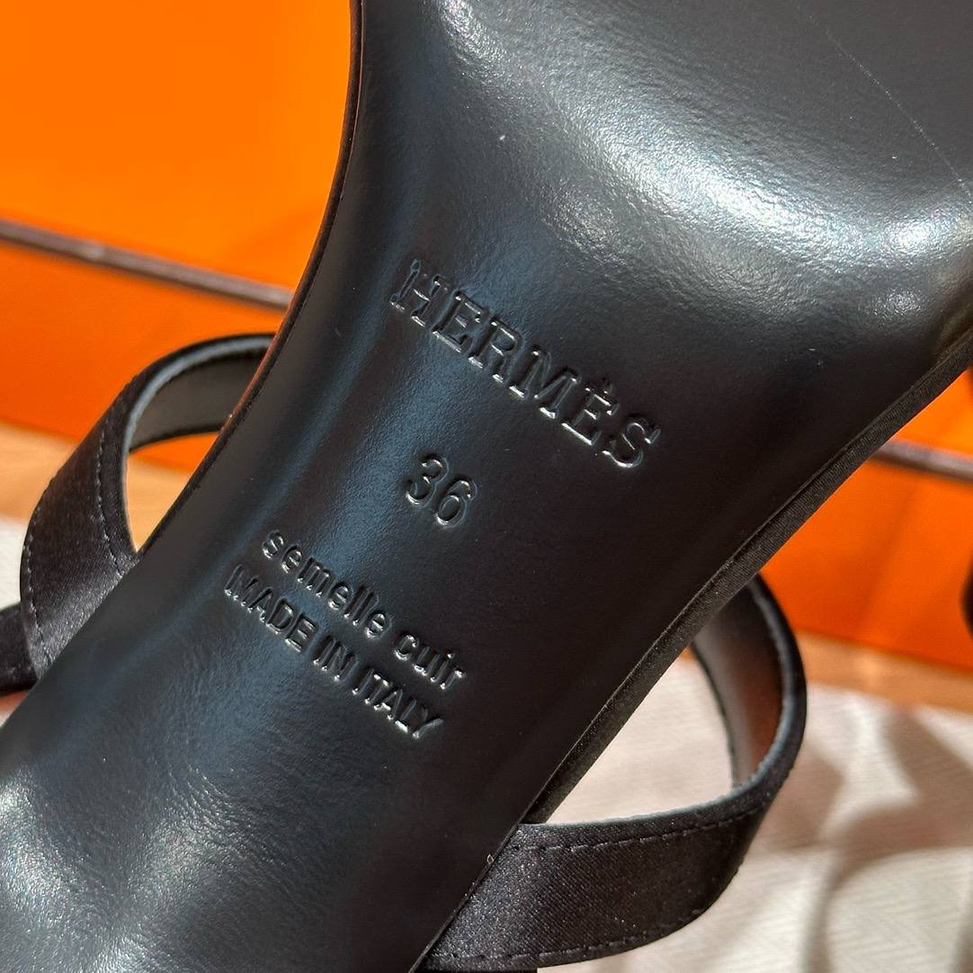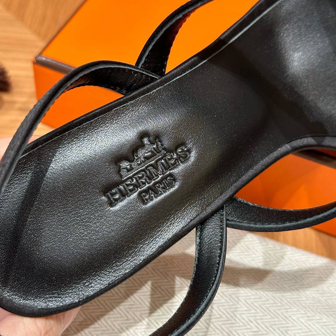 Hermes Glamour Sandals in Satin Noir – Silver Hardware