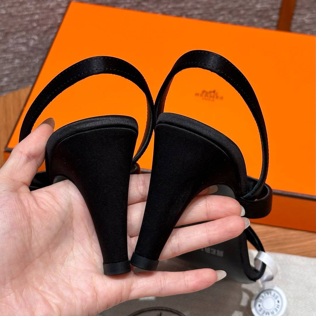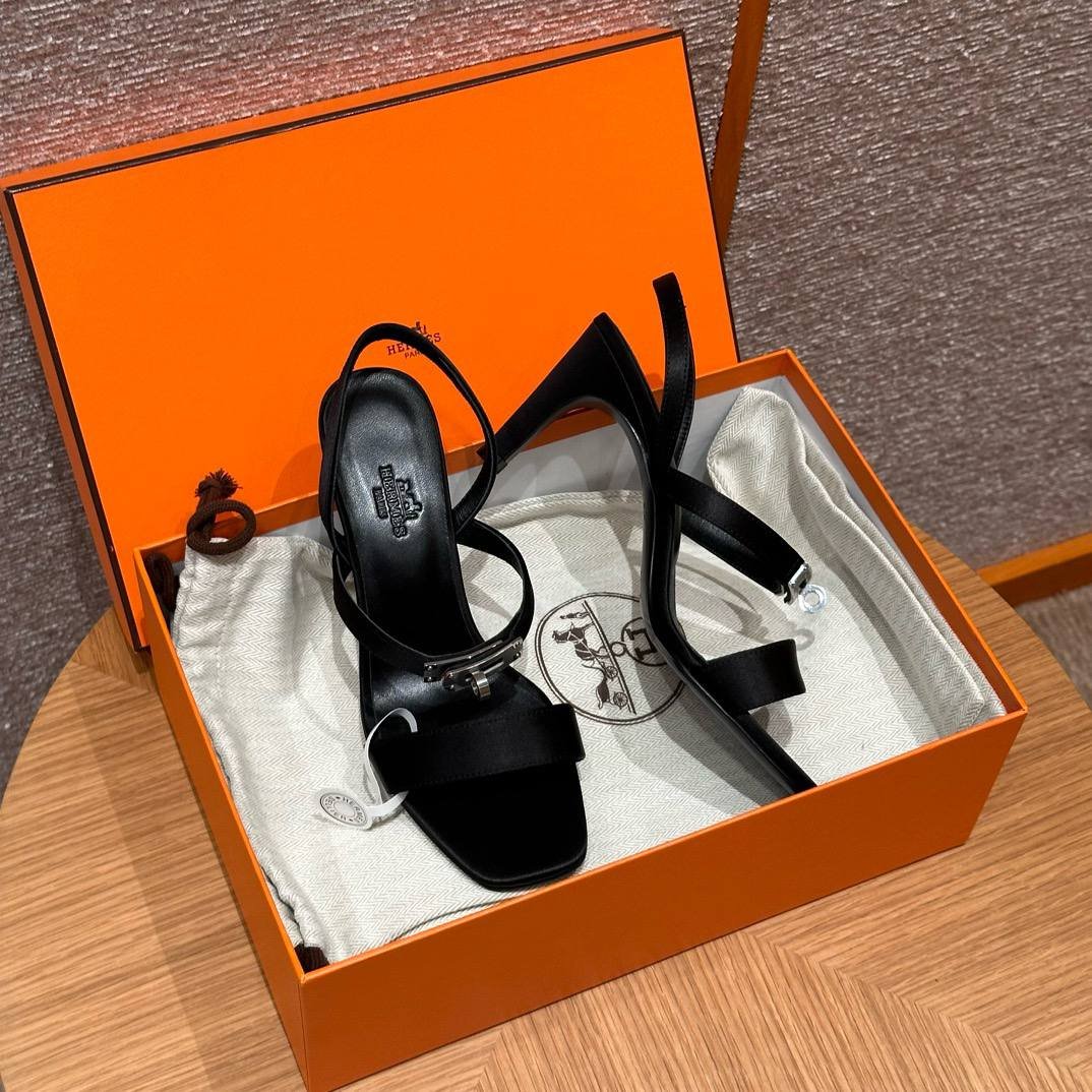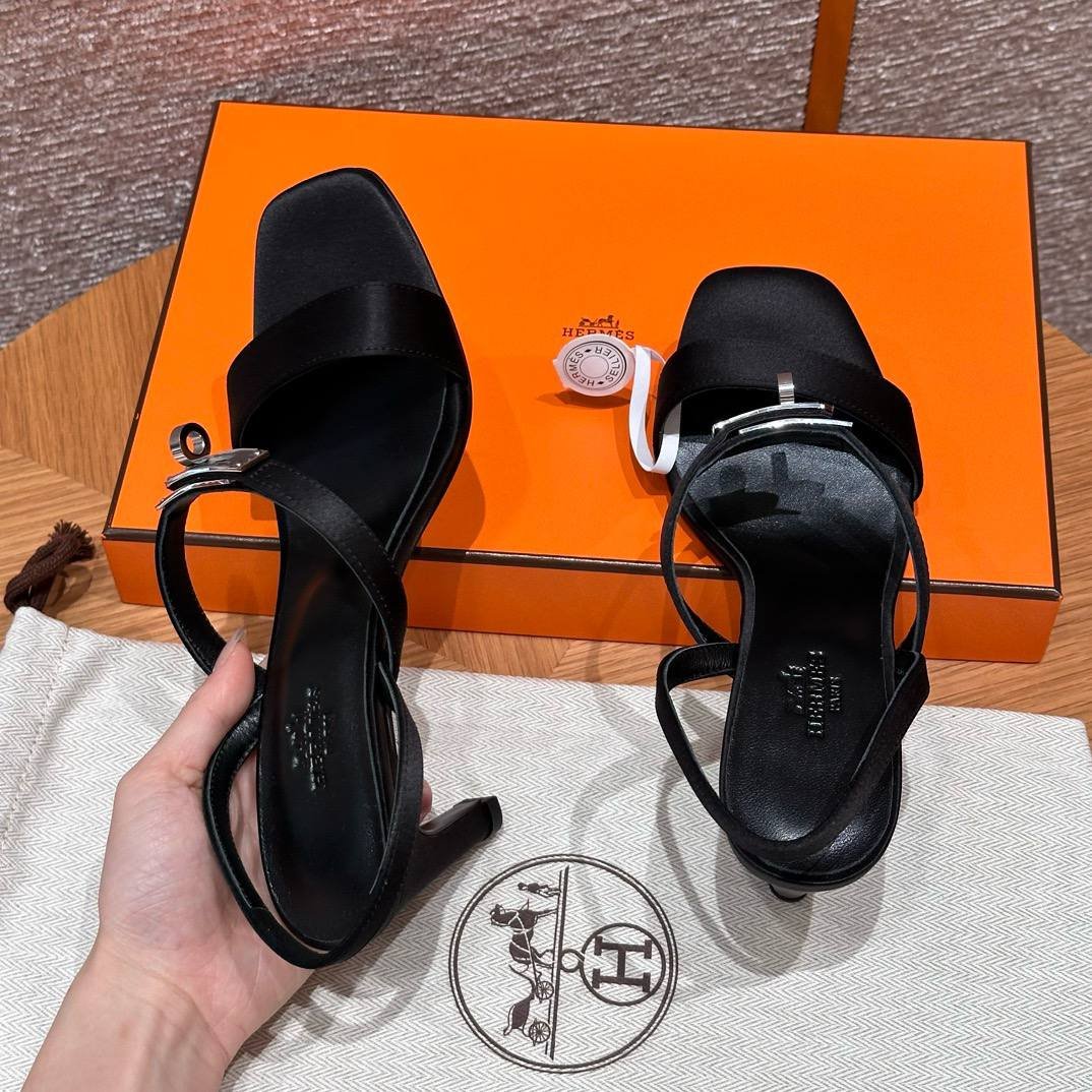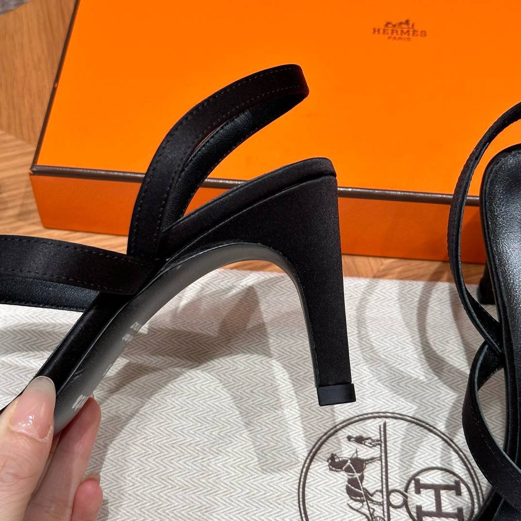 Hermes Glamour Sandals in Satin Noir – Silver Hardware