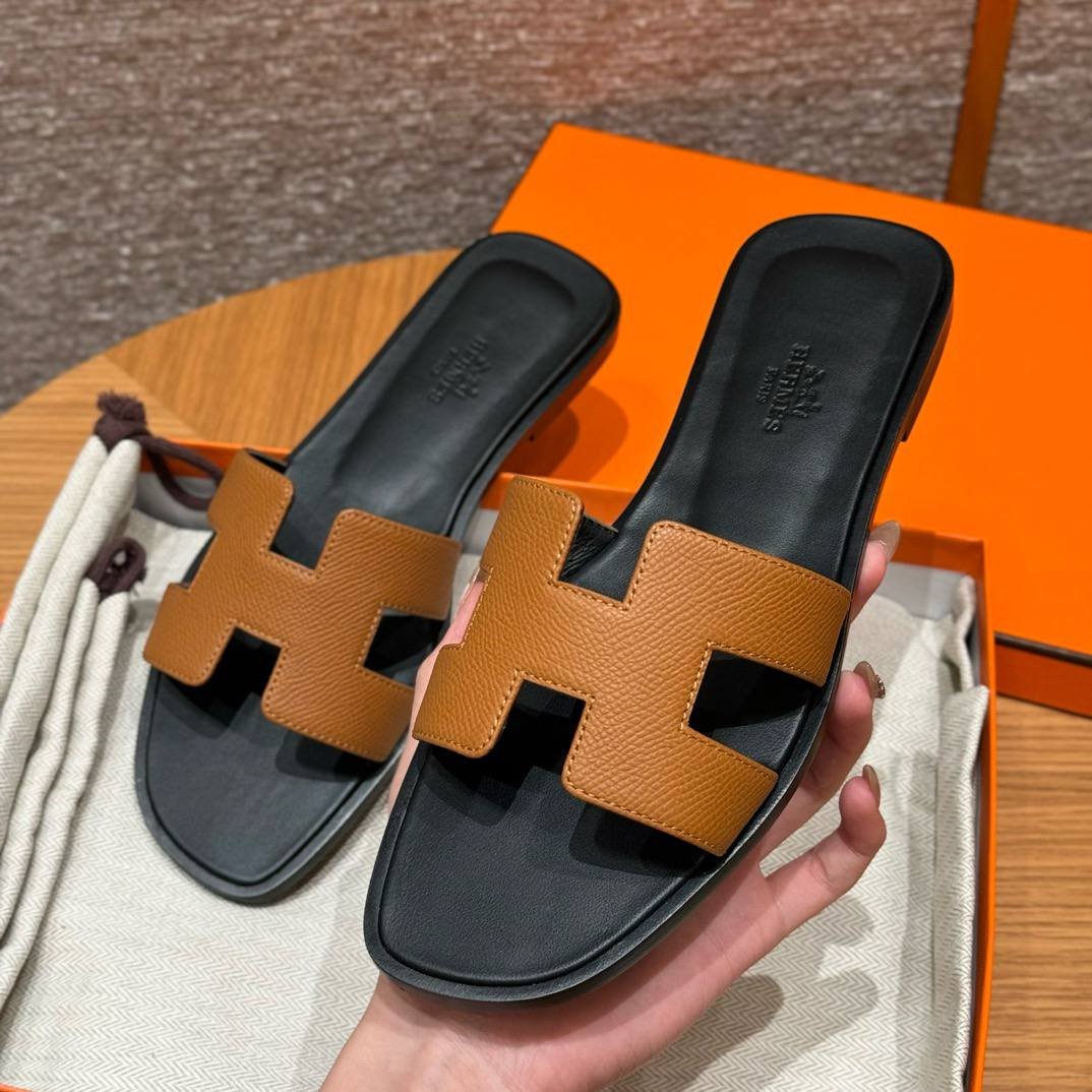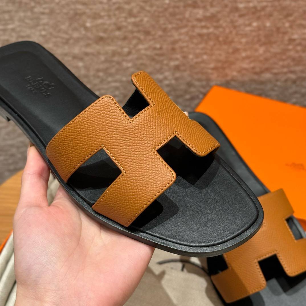 Hermes Oran Epsom Sandal, Gold/Noir