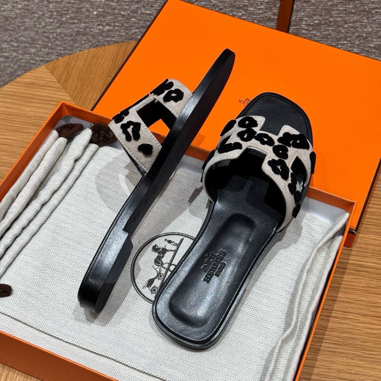 Hermes Oran Sandal, Beige Espuisse/Noir