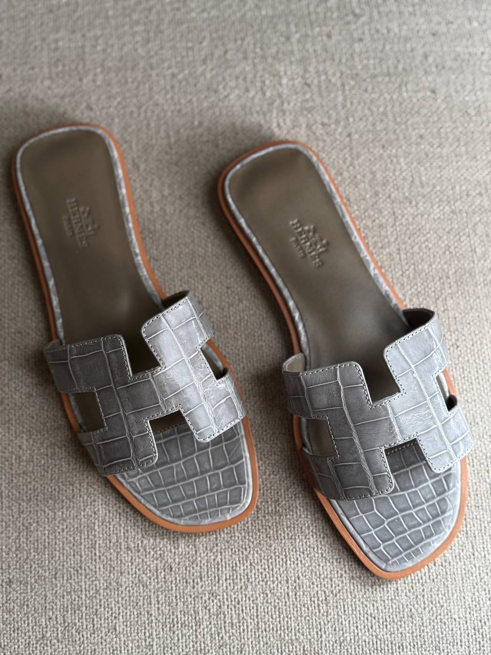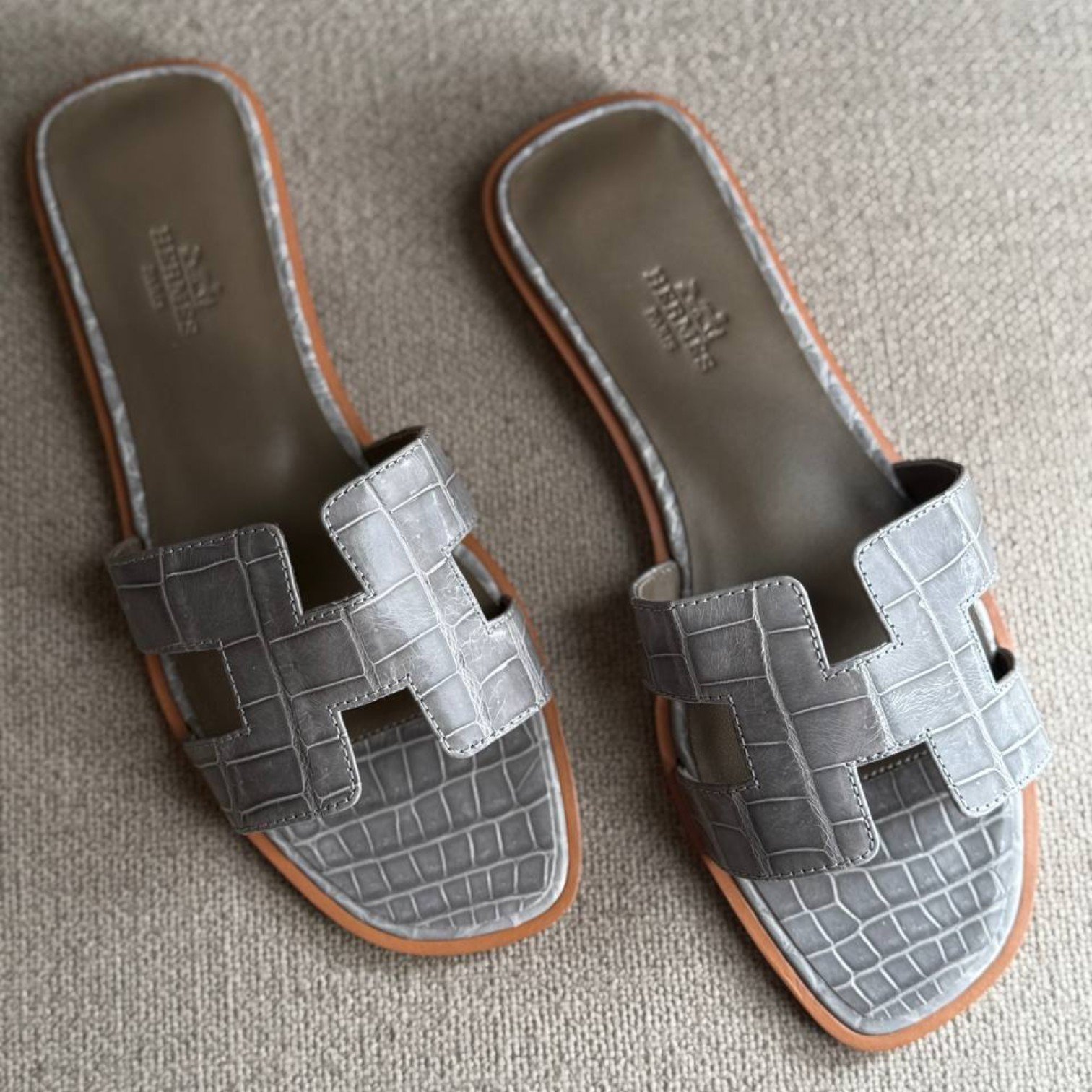 Hermes Oran Sandal Crocodile – Grey