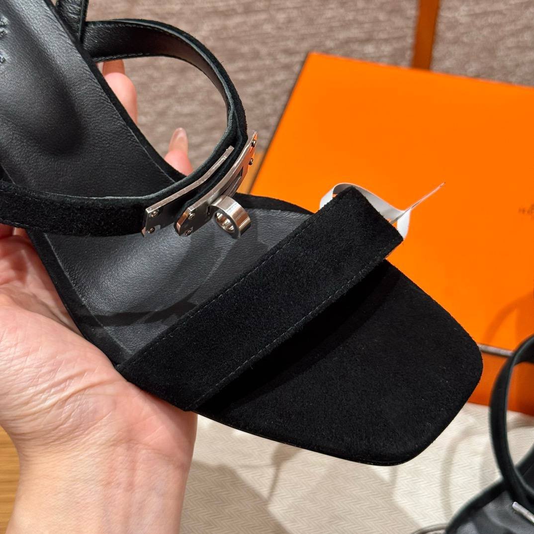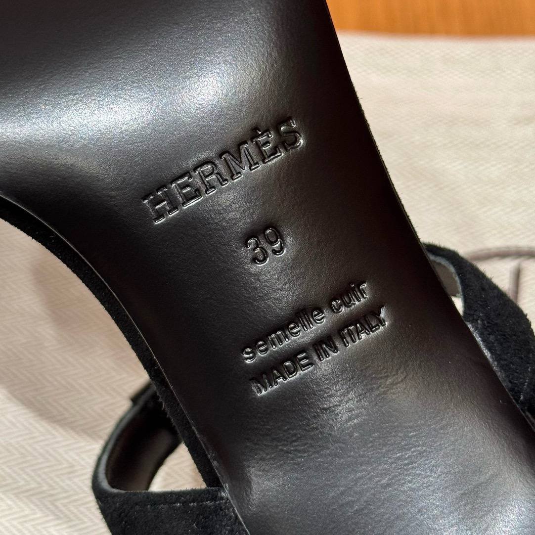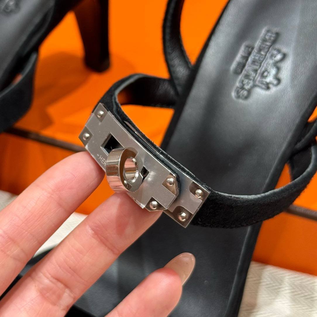 Hermes Glamour Sandals Noir, Chamois Leather – Silver Hardware