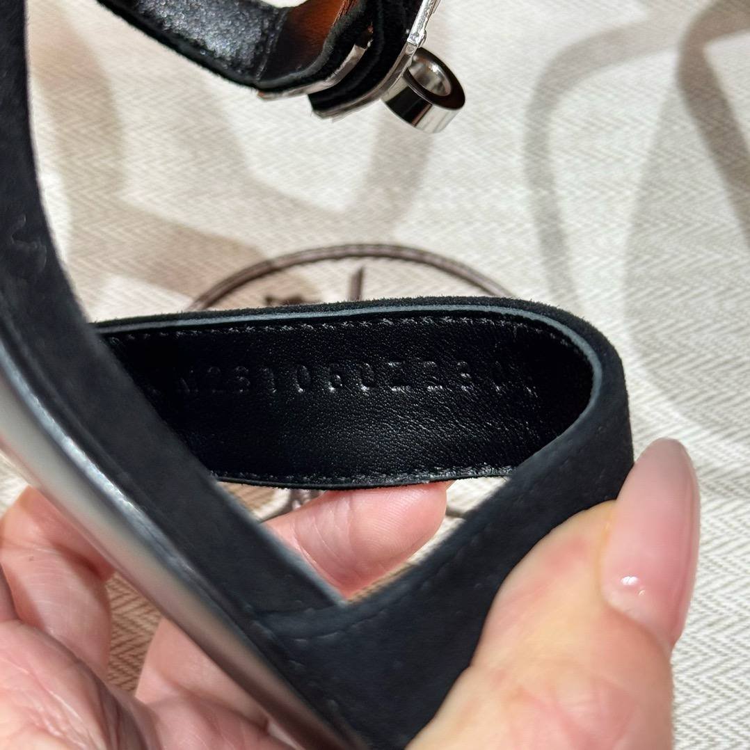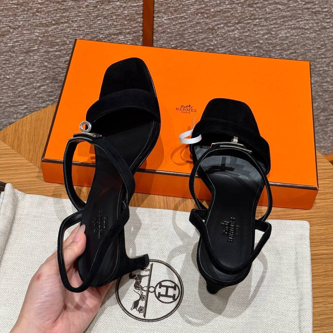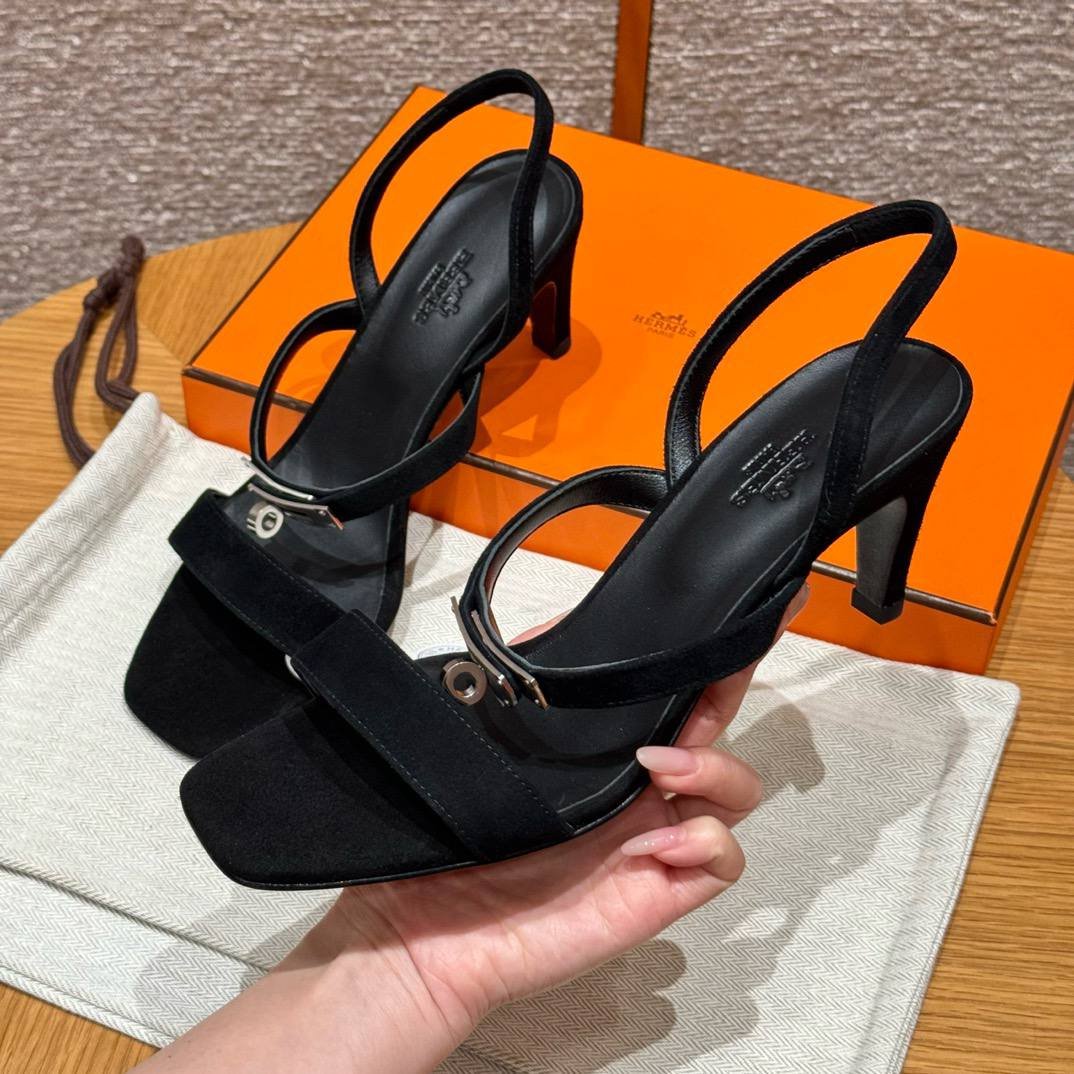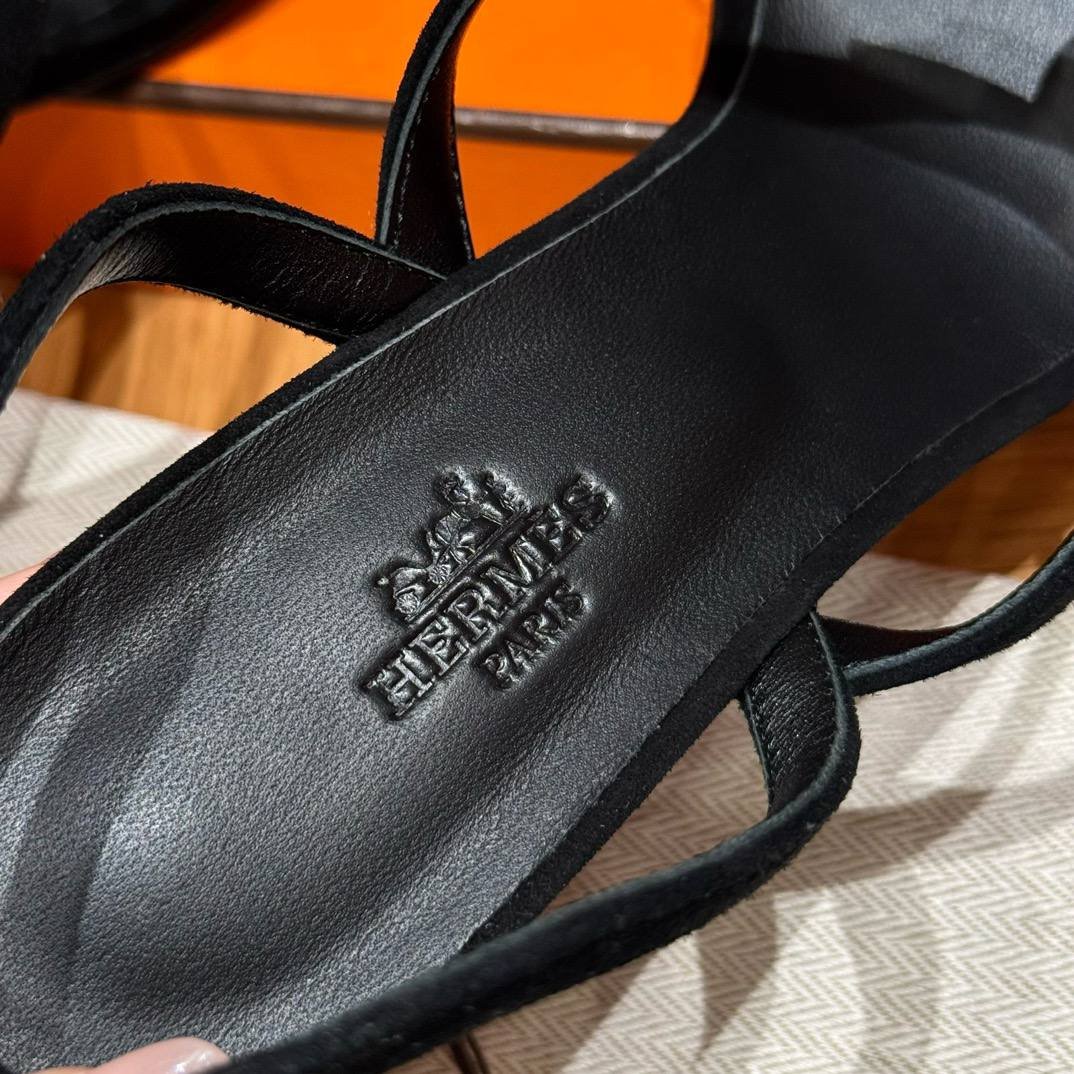 Hermes Glamour Sandals Noir, Chamois Leather – Silver Hardware