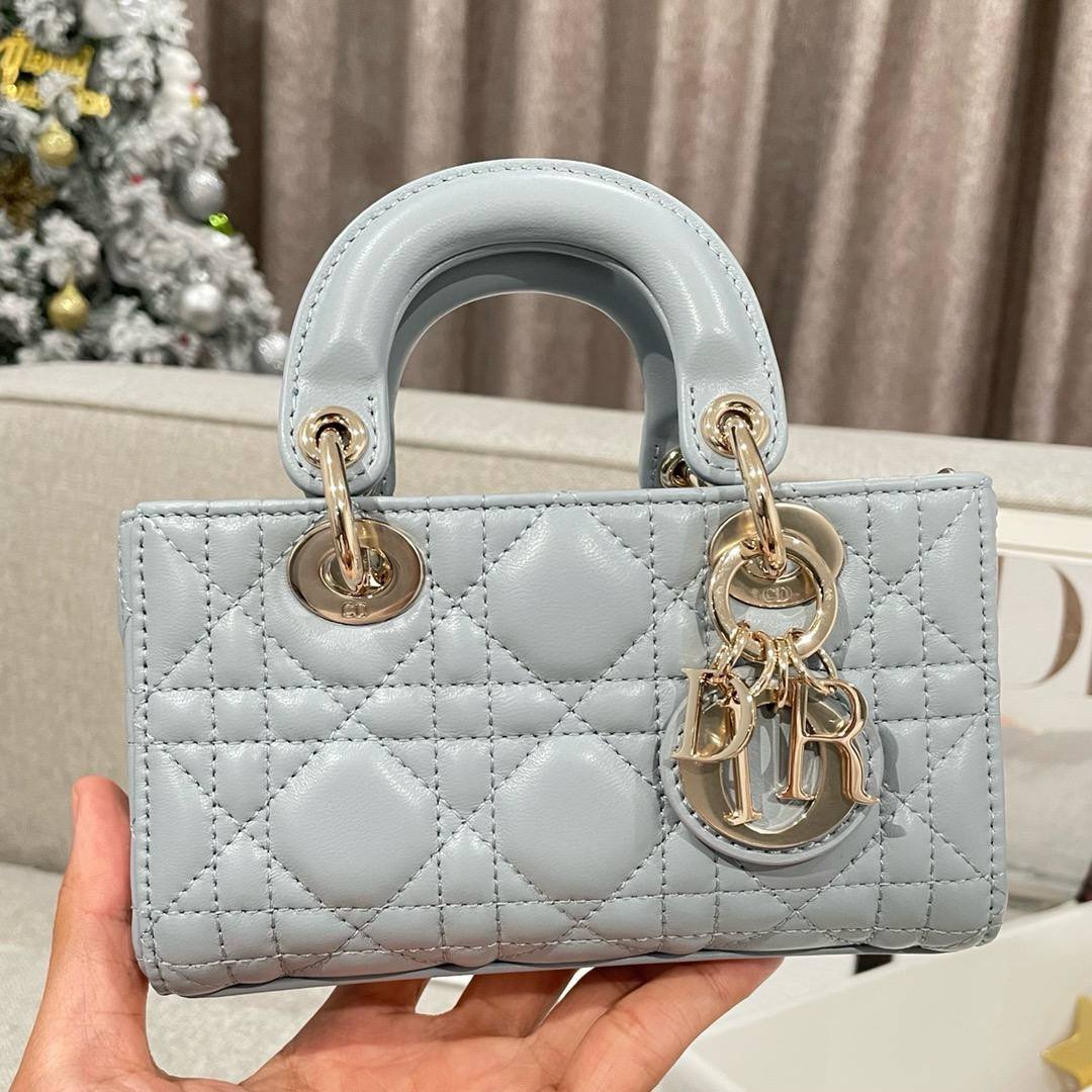 Materials Cannage Lambskin Dimensions 16 cm Color Baby blue