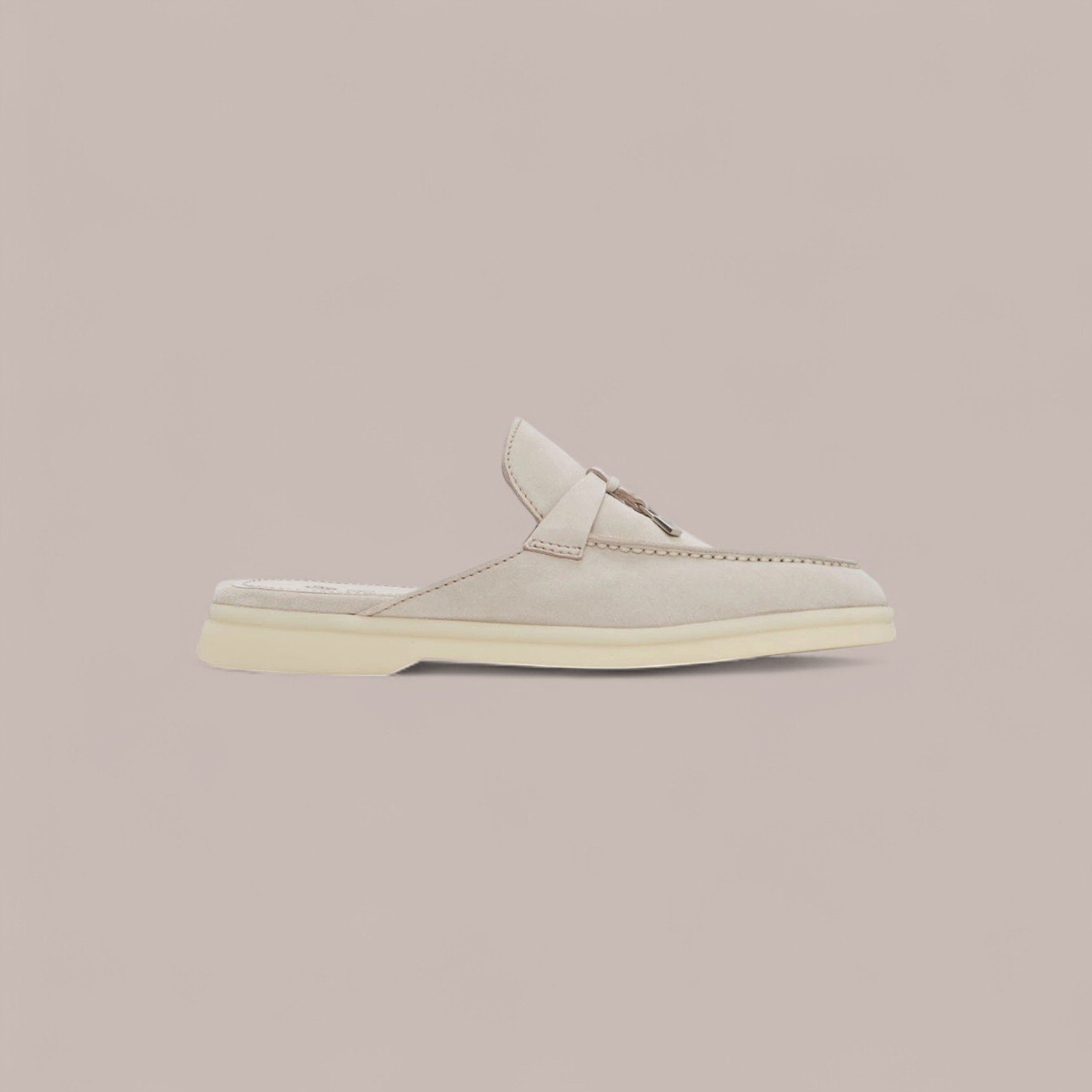 Loro Piana Babouche Charms Walk Loafers In Suede Pearl Grey
