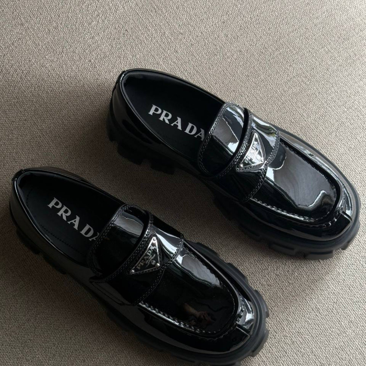 Be the first to review “Prada Brushed Leather Monolith Loafers – Patent Leather Black”