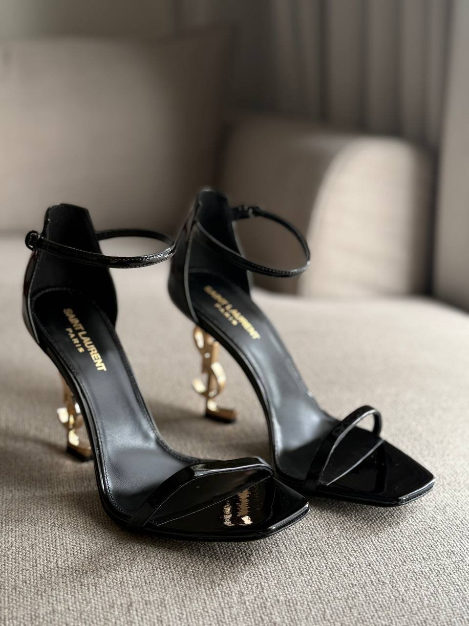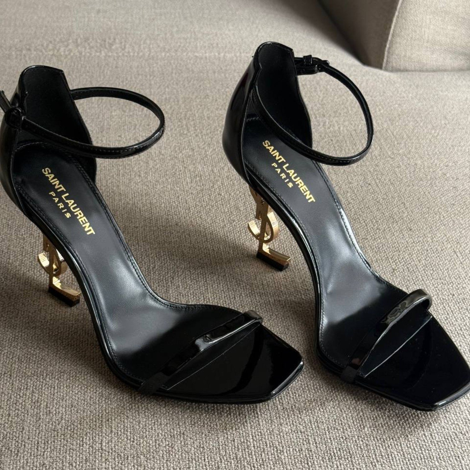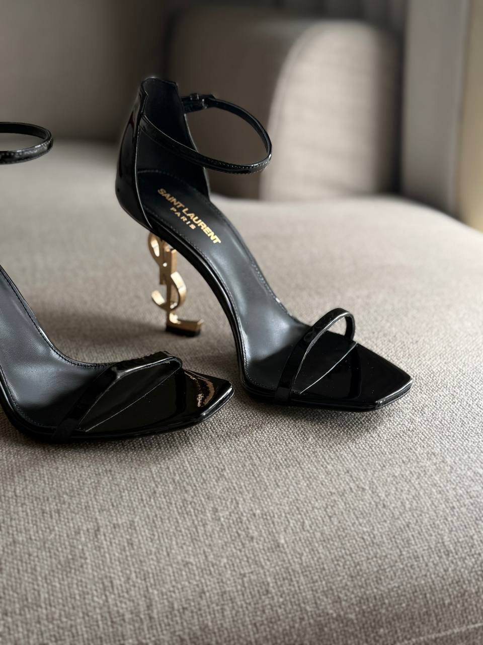 YSL Black Opyum Patent Leather Ankle-Strap Heels