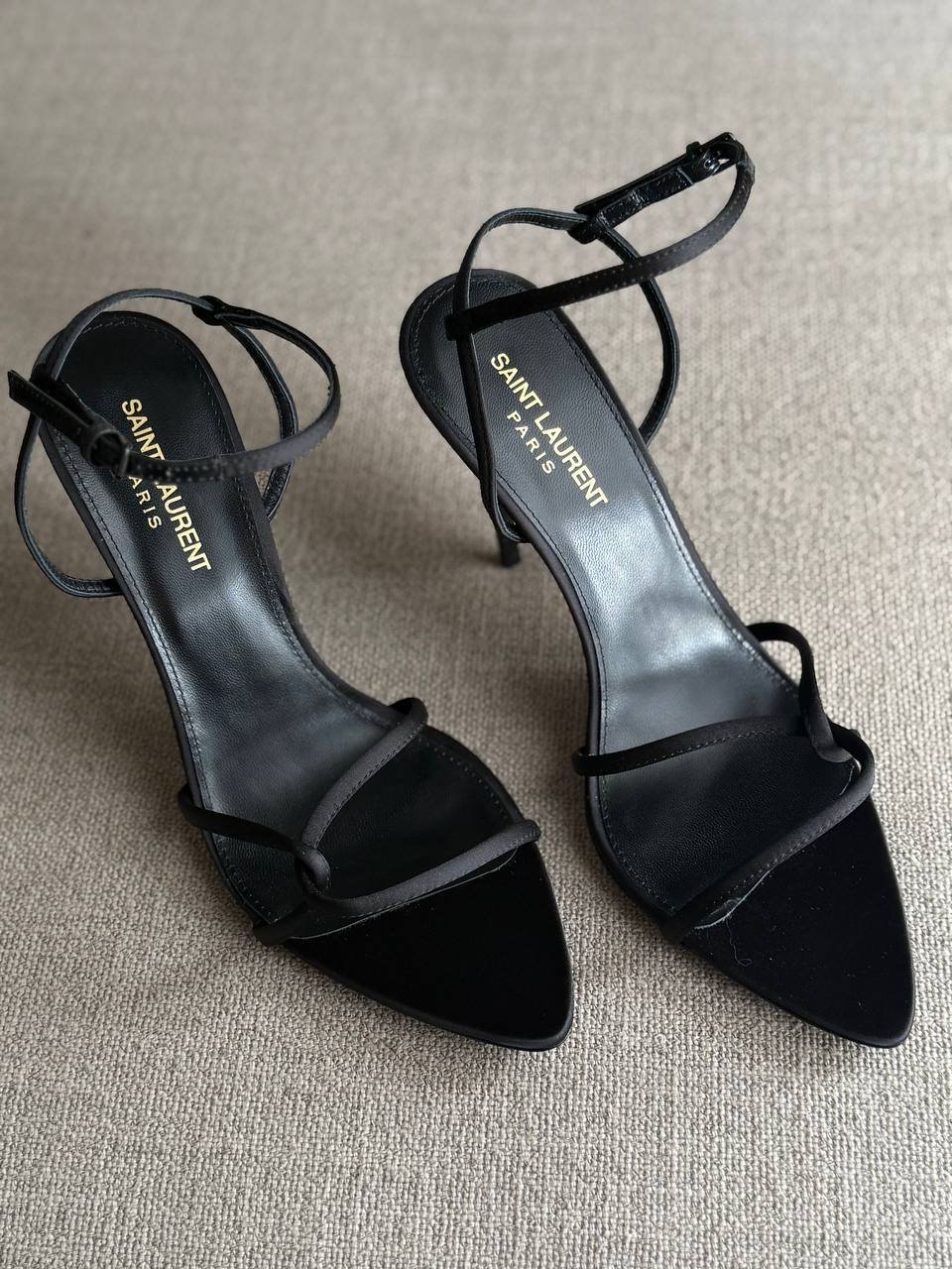 Material Satin Sandal Strap, 4.5" Pointed Heels NOTE: BOX IS DAMAGED.