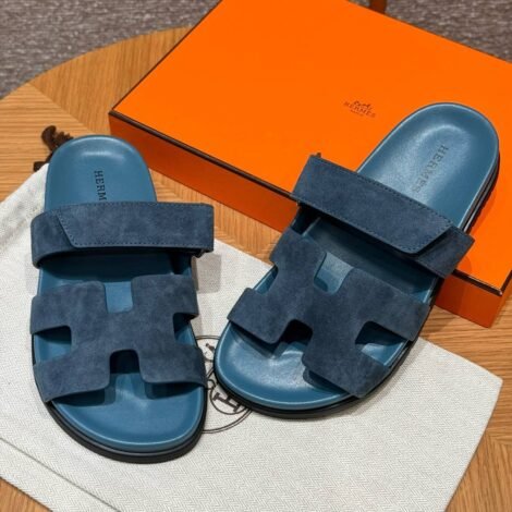 Hermes Chypre Sandals in Purplish Blue, Chamois Leather