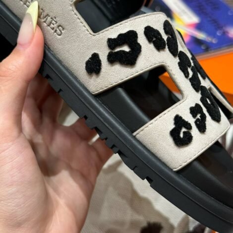 Hermes Chypre Sandals in Noir, Chamois Leather