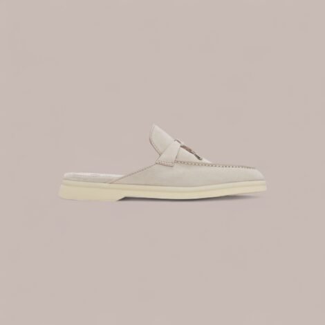 Loro Piana Babouche Charms Walk Loafers In Suede Pearl Grey