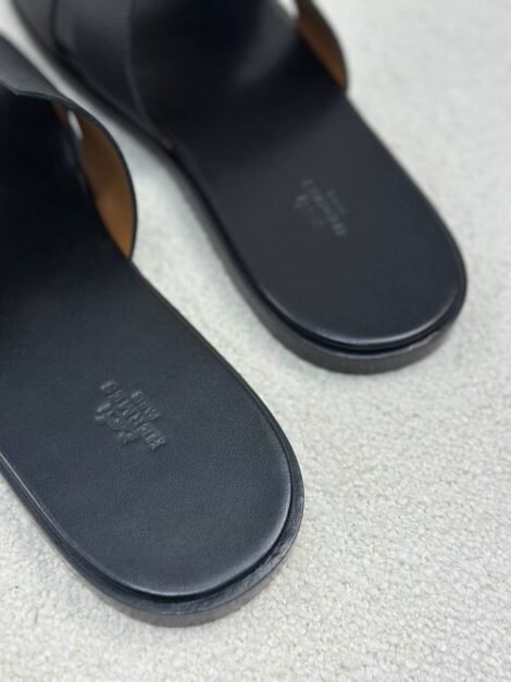 Hermes Glamour Sandals in Satin Noir – Gold Hardware